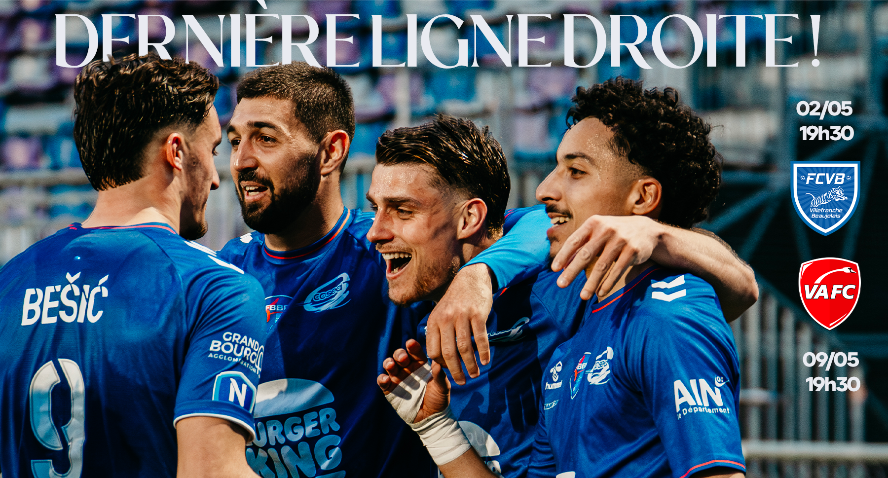 Le FBBP01 va acceuillir le FC Villefranche Beaujolais le samedi 2 mai (19h30), avant d’accueillir le VAFC le samedi 9 mai (19h30). Deux rendez-vous décisifs où chaque point comptera.