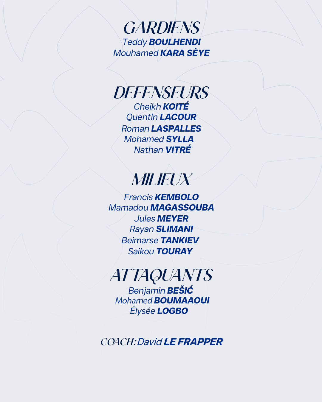 Découvrez le groupe sélectionné par David le Frapper pour cette 22ème journée de championnat face à Orléans.