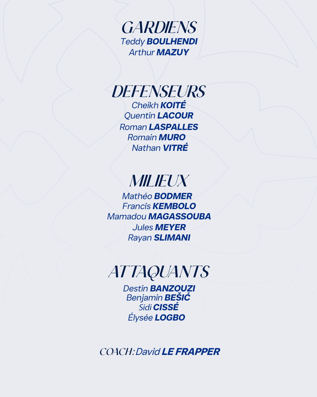 Découvrez le groupe sélectionné par David le Frapper pour cette 27ème journée de championnat face au Football Club Fleury 91.