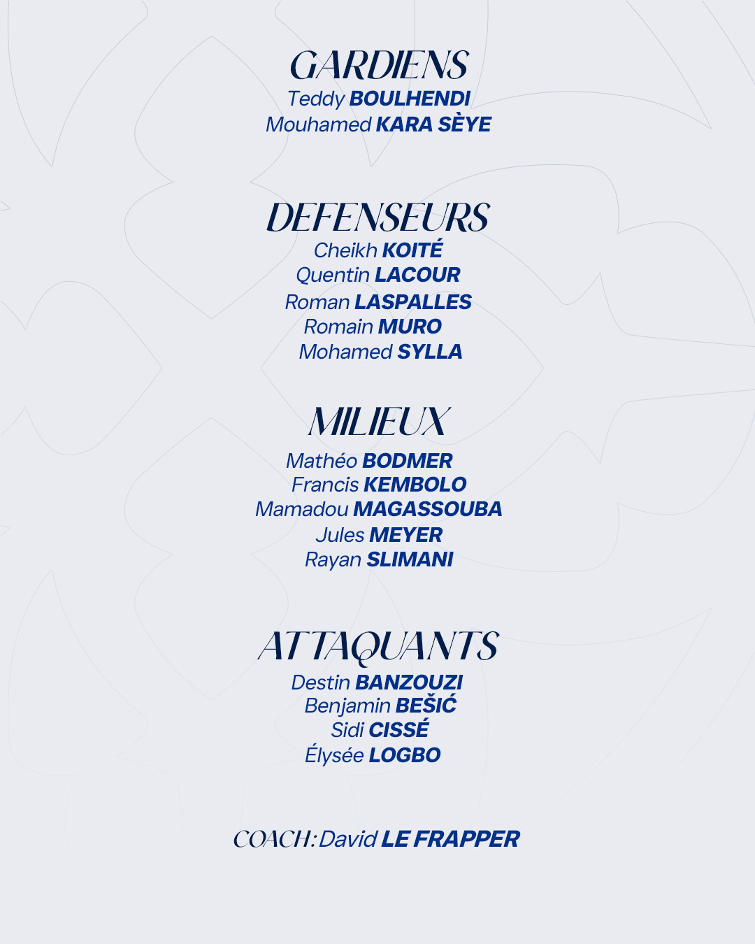 Découvrez le groupe sélectionné par David le Frapper pour cette 23ème journée de championnat face à Quevilly Rouen Métropole.